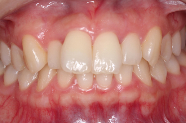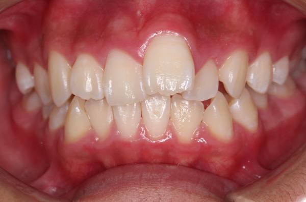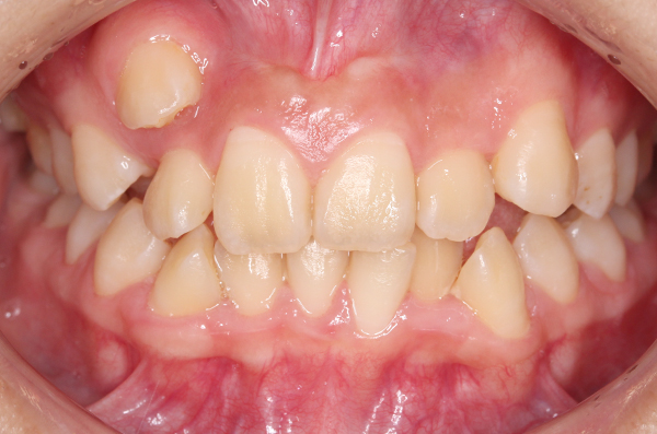 両側中切歯(真ん中の歯)が反対咬合の為、部分的に改善。