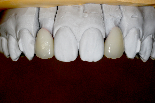 金属アレルギーのリスクがほとんどなく、しかも口腔内に自然に溶け込むため、前歯部の治療で多く用いられる手法です。